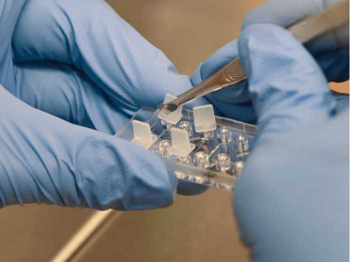 搭配微量分注器使用于兩側60 μL儲液槽中制造出化學物質的線性濃度梯度,此時嵌入在儲液槽中間觀察管道基質膠中的細胞即處于一穩定的線性濃度梯度培養環境中。