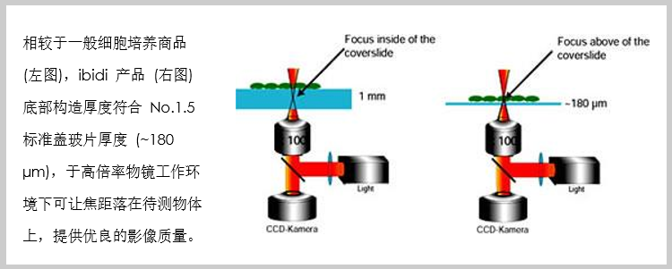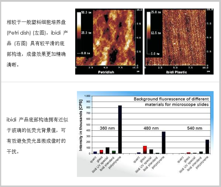 由德國 ibidi 公司所研發(fā)的 µ-Slide 與 µ-Dish 系列產(chǎn)品,與一般市面上常見的細(xì)胞培養(yǎng)器皿不同,其底部是由獨(dú)特的塑料所制造,具有可比擬玻璃材質(zhì)的高光學(xué)穿透與低熒光背景值特性,因此除了可適用于細(xì)胞培養(yǎng)以外,還可在顯微鏡下呈現(xiàn)出非常清晰漂亮的細(xì)胞影像。